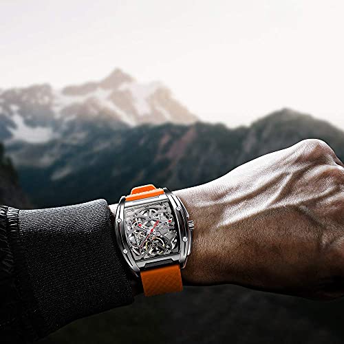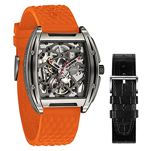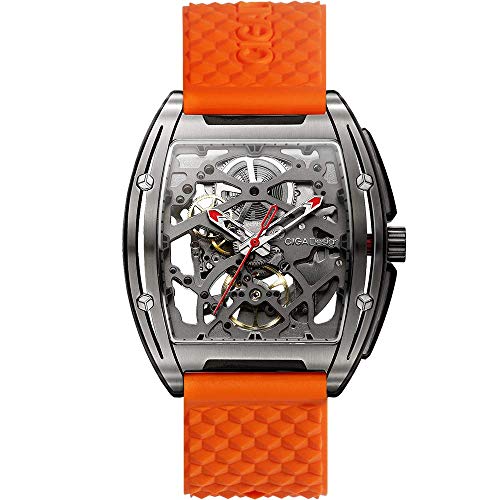 Buy CIGADesign Skeleton Watch Automatic Mechanical Titanium Replica Tonneau Case Casual Wristwatch Waterproof Sapphire Crystal Silicone Leather Strap for Men Unisex TI